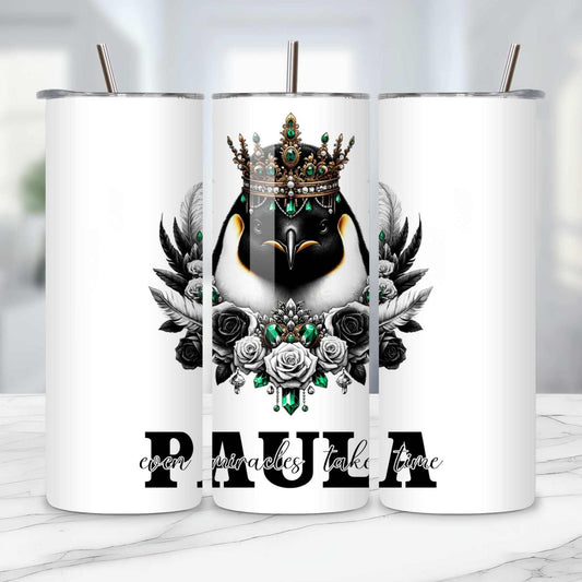 Regal Penguin Crowned Drinkware: Personalized 11oz/15oz Mugs, 20oz Insulated Tumblers, Elegant Coasters - Timeless Gifts for Animal Lovers