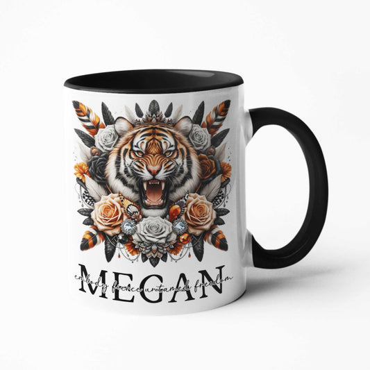 Wild Tiger Floral Drinkware Collection: Personalised Mugs in 11oz/15oz, 20oz Insulated Tumblers, MDF Coasters - Exotic Gifts for Wildlife Enthusiasts