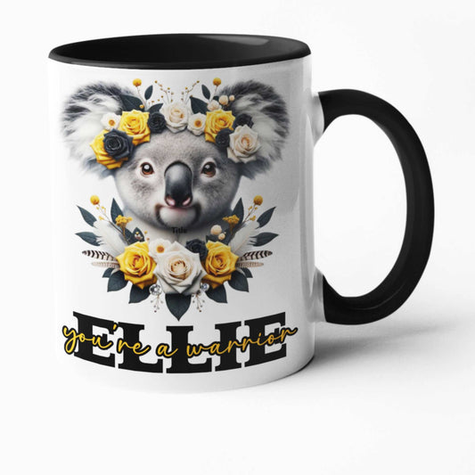 Koala Inspirational Personalised Mug or Tumbler 11oz/15oz Ceramic Mugs, 20oz Travel Tumbler, Colorful Coasters - "You're a Warrior" Collection