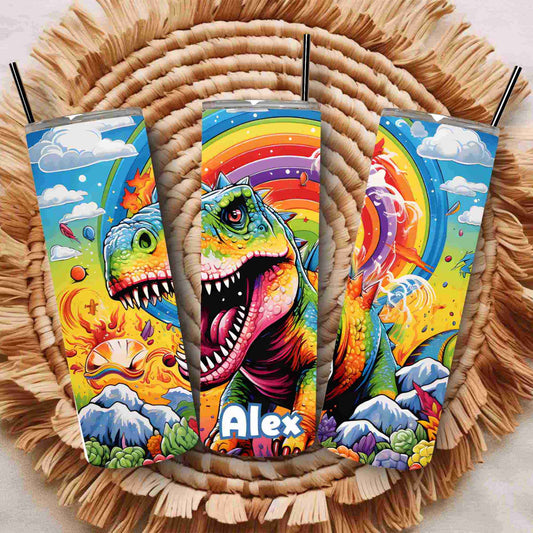 Rainbow dinosaur 20oz tumbler for boys or girls