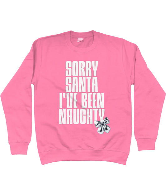 Sorry Santa I've Been Naughty Christmas Jumper – Funny Holiday Sweatshirt, Festive Christmas Jumper in Fire Red, Navy, Pink & More