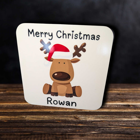 Reindeer Mug & Coaster Set with Custom Name – Pink Ceramic Mug with Matching Spoon 🎅 Perfect Festive Gift for Hot Chocolate, Coffee, & Tea Lovers This Christmas 🎄 Stocking Filler, Secret Santa, Christmas Morning