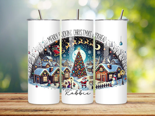 Merry F*cking Christmas Dickhead Personalised Stainless Steel Tumbler – Customised Holiday Drinkware for Festive Fun