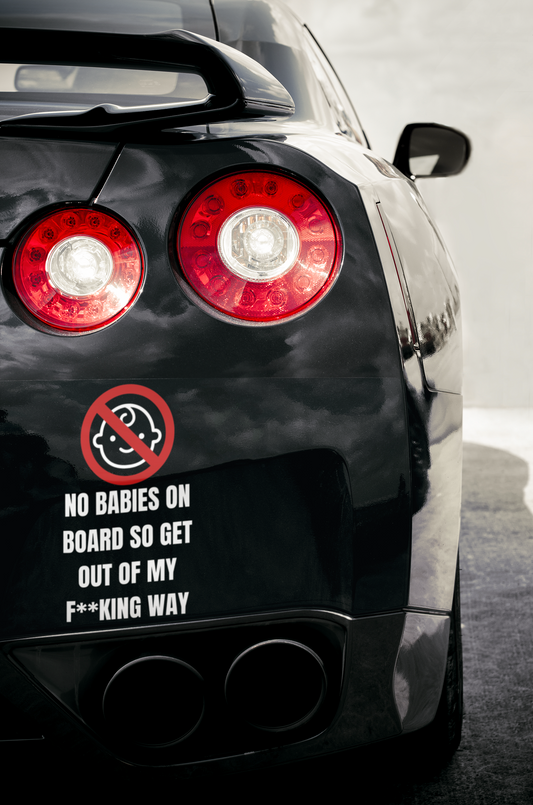 No Babies On Board Funny Vinyl Decal Sticker – 14cm x 8cm – Hilarious, Sassy Car Sticker for Adults Without Kids