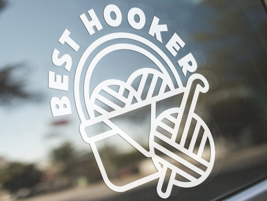 Best Hooker" Vinyl Decal Sticker – Perfect for Crochet Lovers – Available in Black, White, or Red – Multiple Sizes