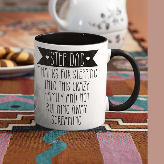 Step Dad Thanks for Stepping Into This Crazy Family Mug - Funny Stepdad Gift, Father's Day Mug, Stepfather Appreciation Gift