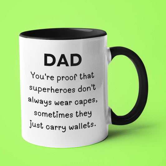 Funny Dad Superheroes capes Just Carry Wallets Mug for Fathers Day Birthday or Christmas Gift