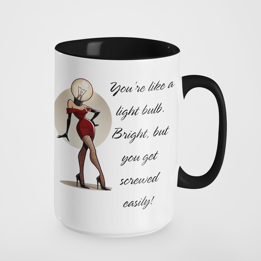 You're Like a Light Bulb: Bright, But You Get Screwed Easily! Cheeky Humour Mug | Naughty Gift for Friends | Saucy Coffee Cup | Funny Adult Banter