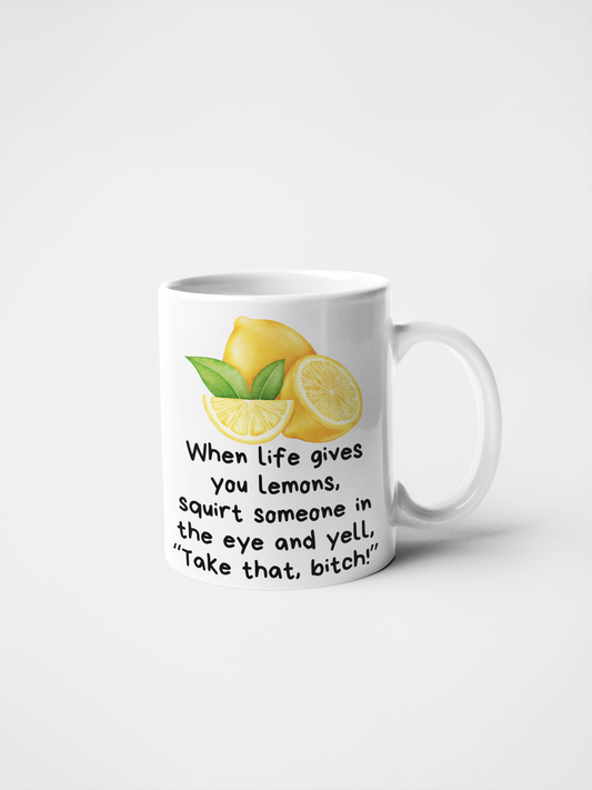 When Life Gives You Lemons Funny Sarcastic Mug - 11oz & 15oz - Quirky Humorous Gift for Friends - Sassy Coffee Cup with Lemon Design