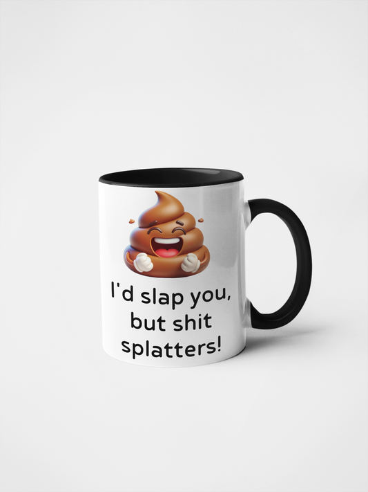 I'd Slap You But Shit Splatters Funny Mug - 11oz & 15oz - Hilarious Sarcastic Coffee Cup - Perfect Gag Gift for Friends & Coworkers