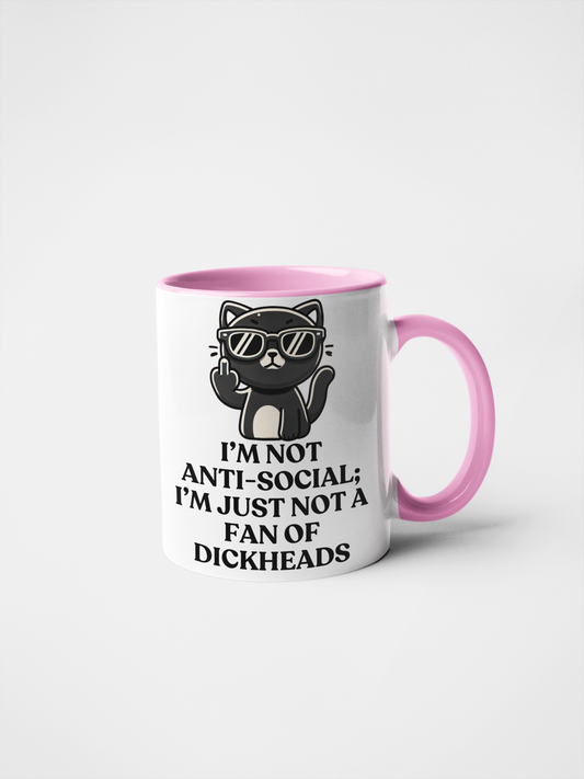 I'm Not Anti-Social; I'm Just Not a Fan of Dickheads Sarcastic Cat Lover Mug