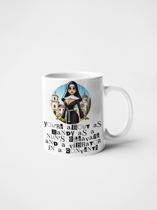 You're About as Handy as a Nun's Cleavage Mug – Funny & Naughty Gift for Friends, Colleagues, Birthdays & Christmas