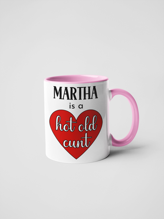 Hot Old Cunt Personalised Mug – Custom Name Heart Design – Hilarious Gift for Friends, Coworkers, Secret Santa – Cheeky, Adult Humour Mug