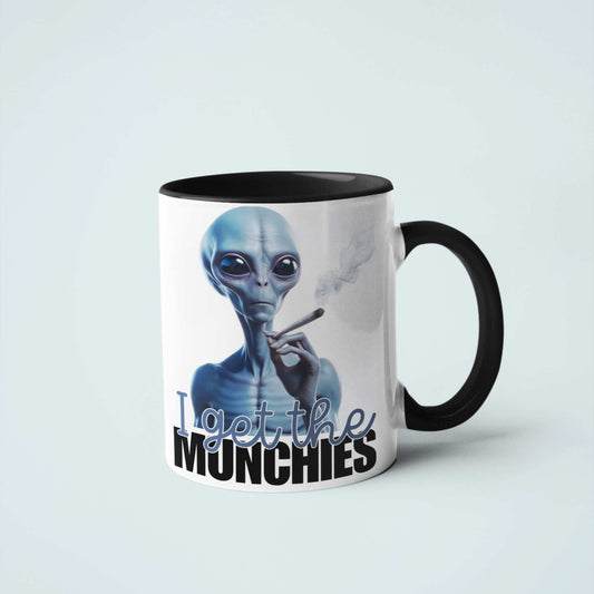 I Get the Munchies Stoner Blue Alien Mug - Funny Alien Smoking Mug, Quirky Coffee Cup, Hilarious Tea Mug, Humorous Weed Coaster