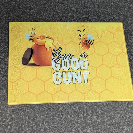 Bee a Good Cunt Chopping Board - Premium Toughened Glass, Vibrant Colours, Chinchilla Effect