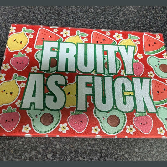 Fruity As Fuck Chinchilla Textured Glass Chopping Board - Colourful Kitchen Décor, Durable 28x20 cm