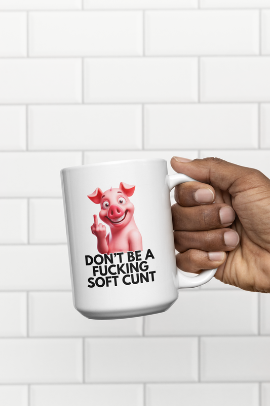 Don't Be a Fucking Soft Cunt Mug – Funny Pig Design, Offensive Coffee Mug, Humorous Gift