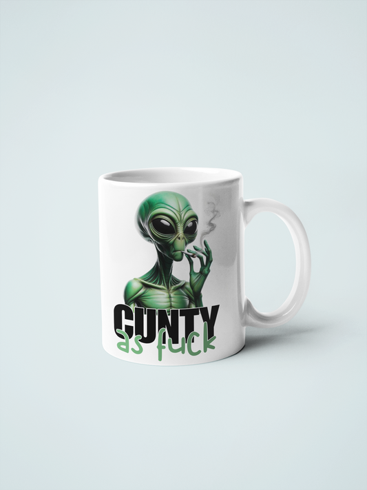 Cunty As Fuck Stoner Alien Mug - Funny Alien Smoking Mug, Quirky Coffee Cup, Hilarious Tea Mug, Humorous weed Coaster