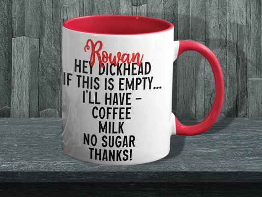 Hey dickhead personalised hot drink instruction sweary rude coffee mug