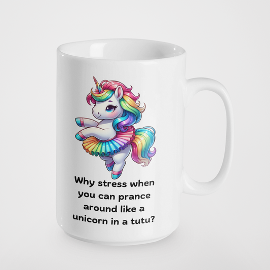 Why Stress When You Can Prance Around Like a Unicorn in a Tutu? Funny Unicorn Mug | Rainbow Unicorn Tutu Mug | Cute Gift for Unicorn Lovers | 11oz & 15oz Ceramic Coffee Mug