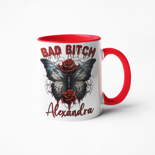 Bad bitch gothic style butterfly roses personalised coffee mug