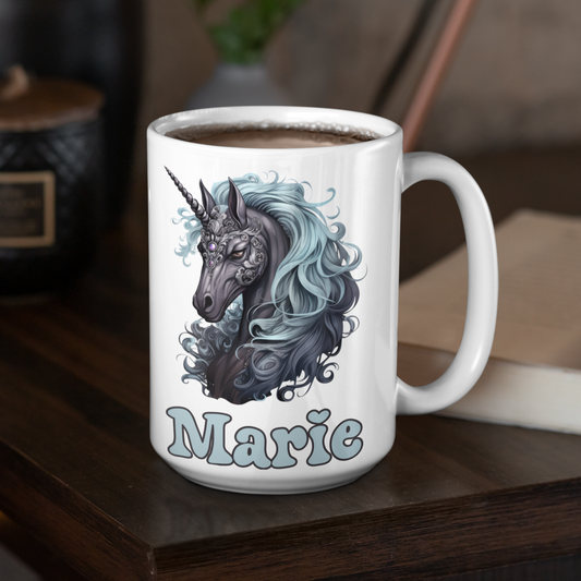 Gothic unicorn blue hair personalised coffee mug