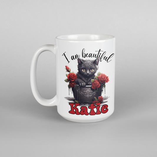 I am beautiful cat roses gothic style Personalised mug
