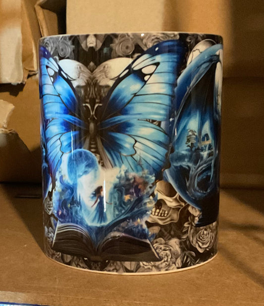 Blue dragon on grey skulls full wrap fairytale mug