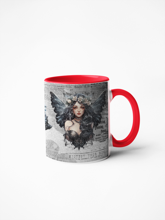 Gothic fairy girl castle butterfly on newspaper background 11oz mug