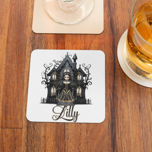 Gothic doll with haunted house coffee mug
