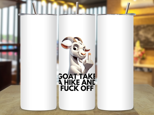 Goat Take a Hike and Fuck Off – Funny Goat Mug, Sarcastic Tumbler, Cheeky Coaster Gift for Friends and Office