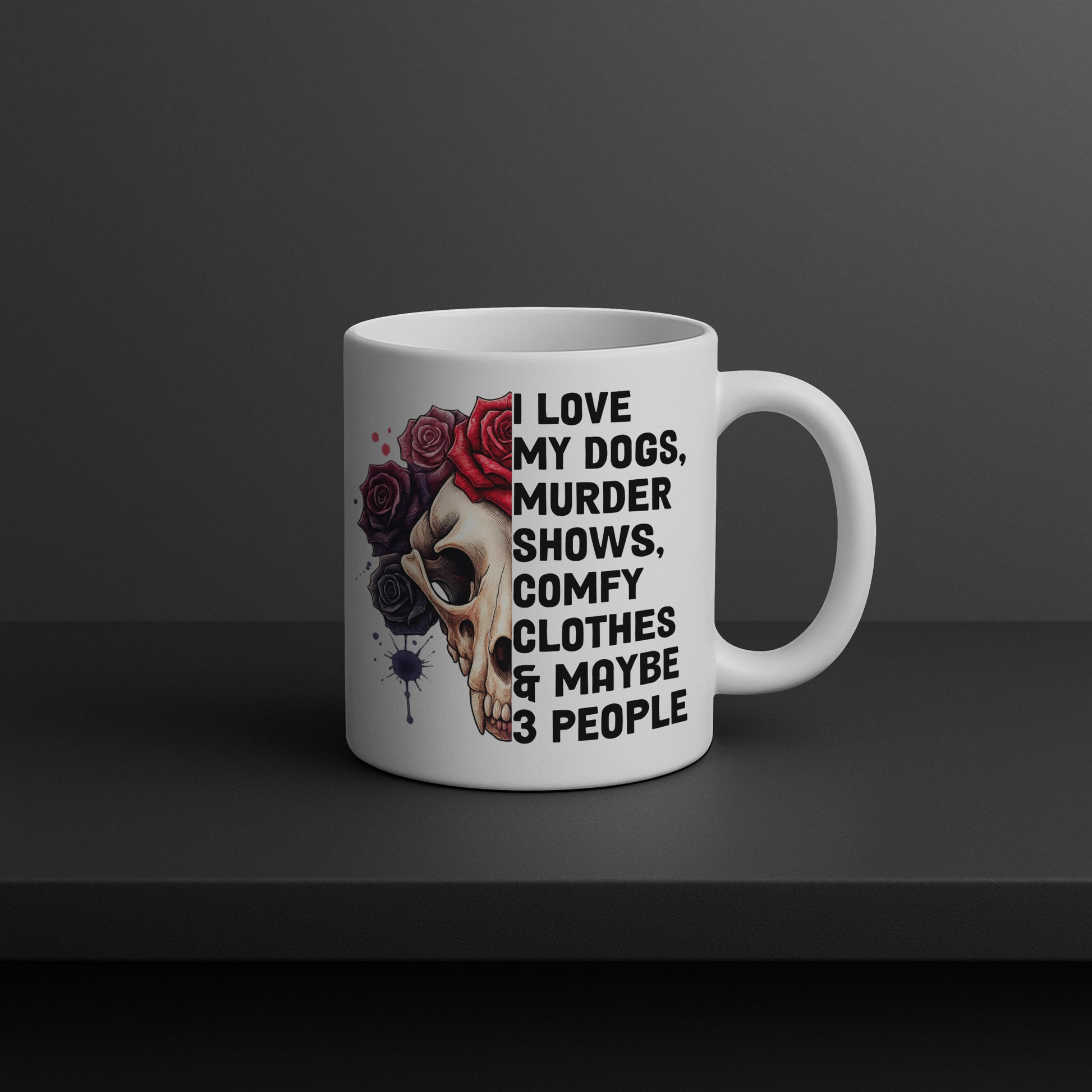 Know someone who loves their dogs more than most people, binges murder documentaries like it’s their full-time job, and lives in cosy clothes? This funny dog mug says exactly what they’re thinking: “I love my dogs, murder shows, comfy clothes and maybe 3 people.”