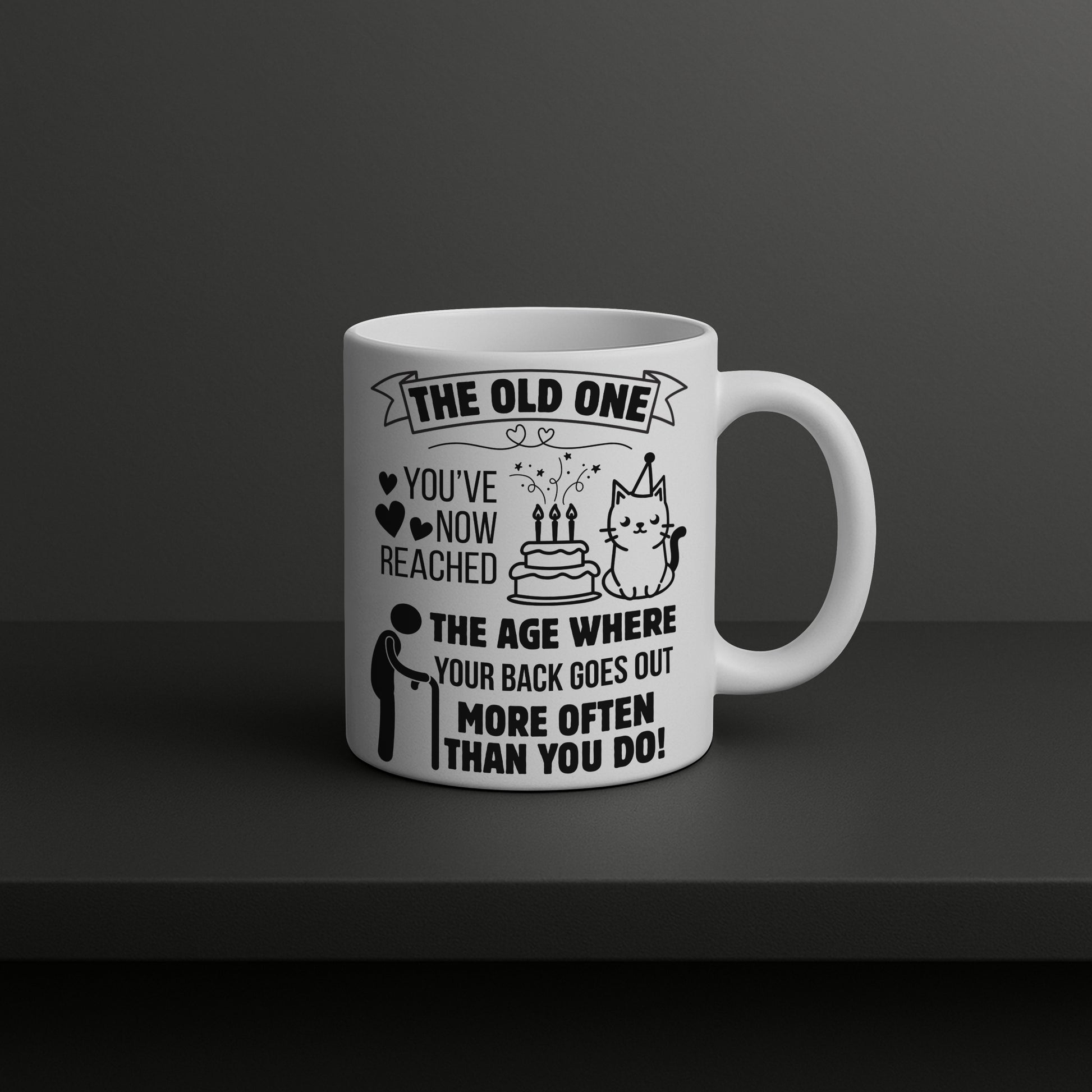 Funny Milestone Birthday Mug for Women or Men | “The Old One” Sarcastic Gift for Adult Friend, Sister, Colleague