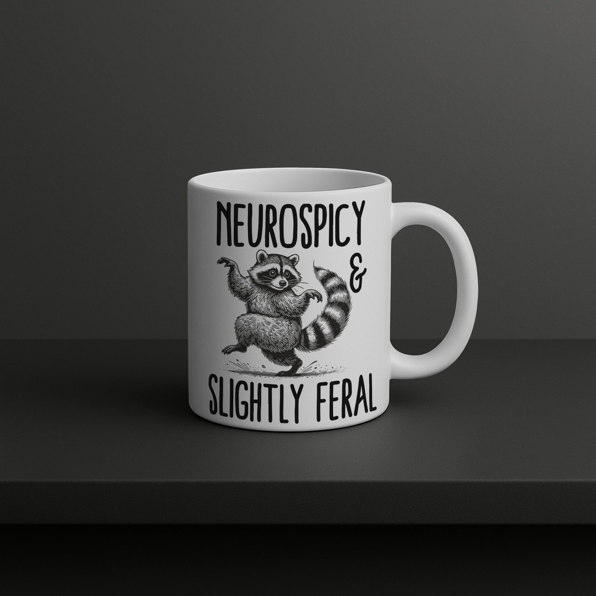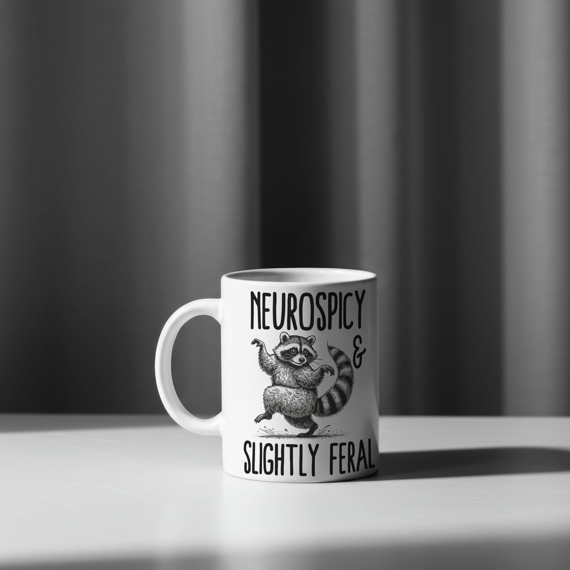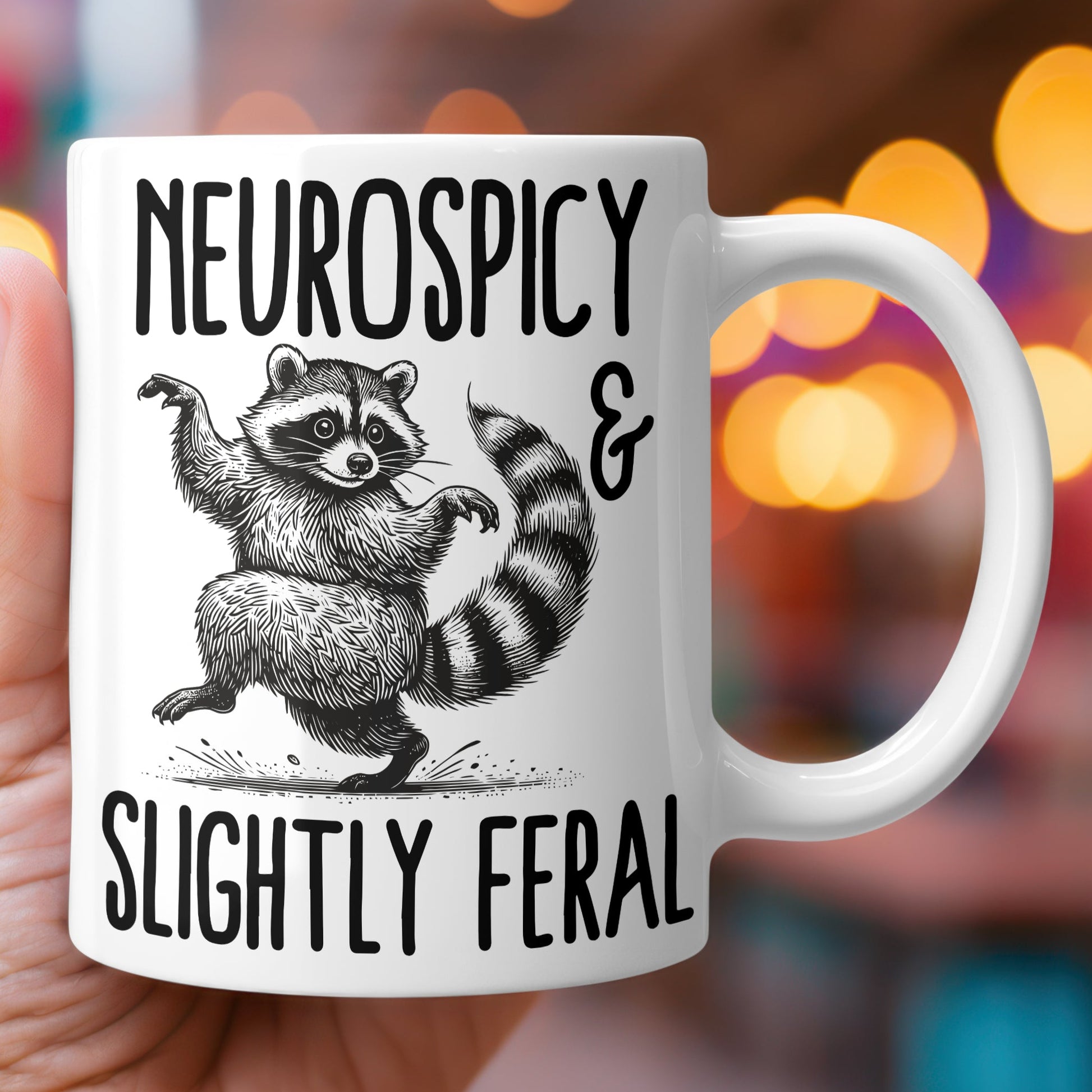 Neurospicy Mug Slightly Feral Raccoon Funny ADHD Autism Coffee Cup Gift 11oz 15oz