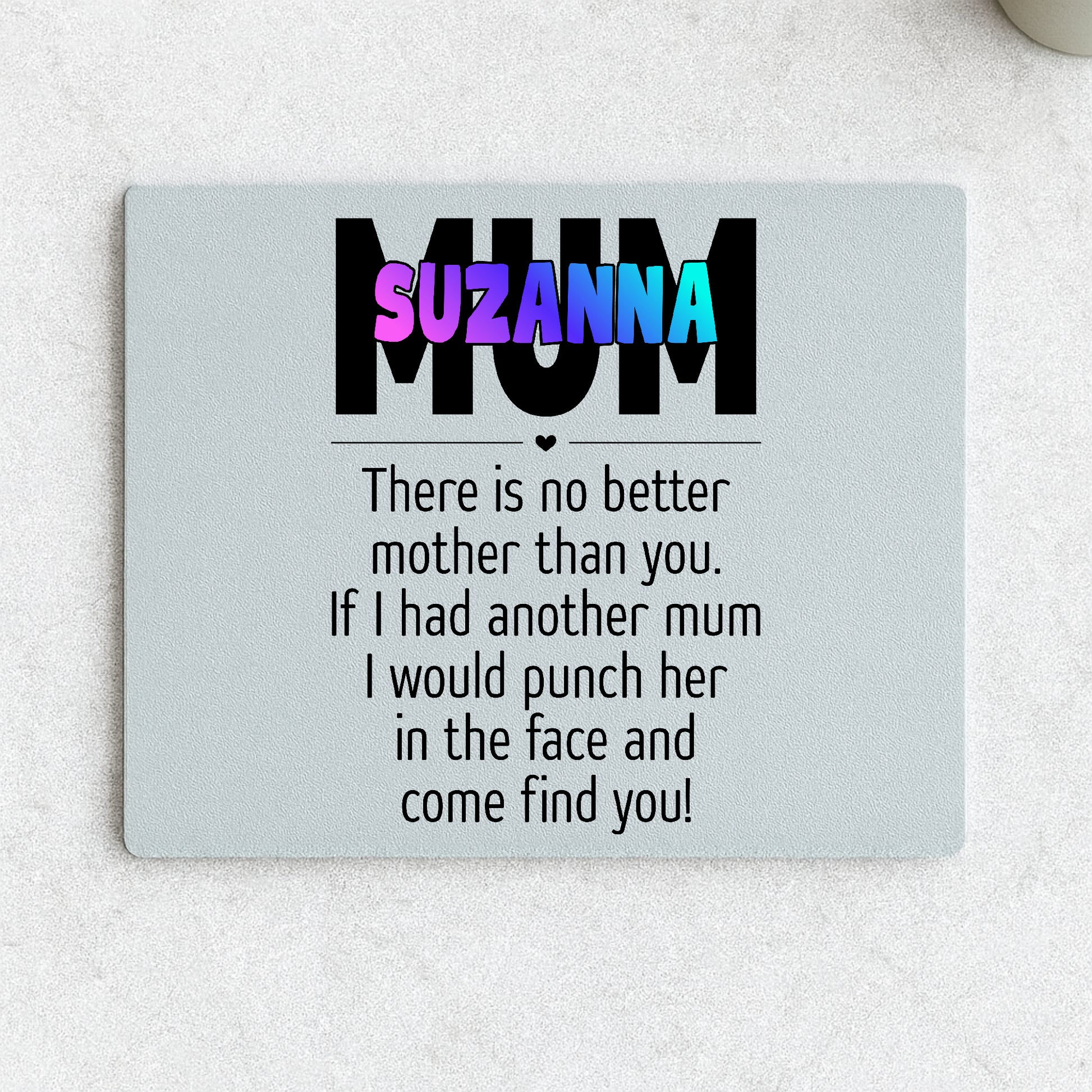 A personalised mum chopping board that is equal parts practical and bold.