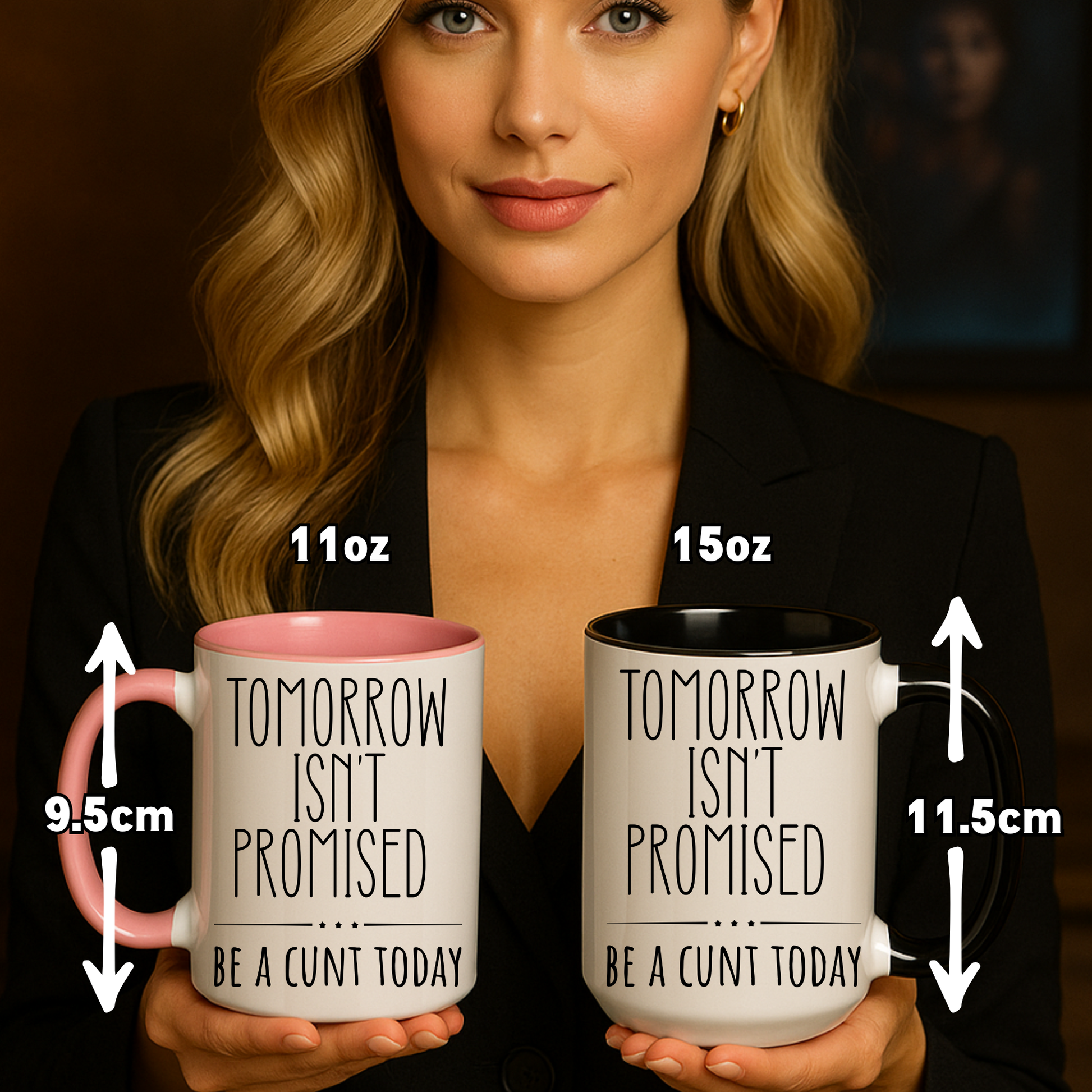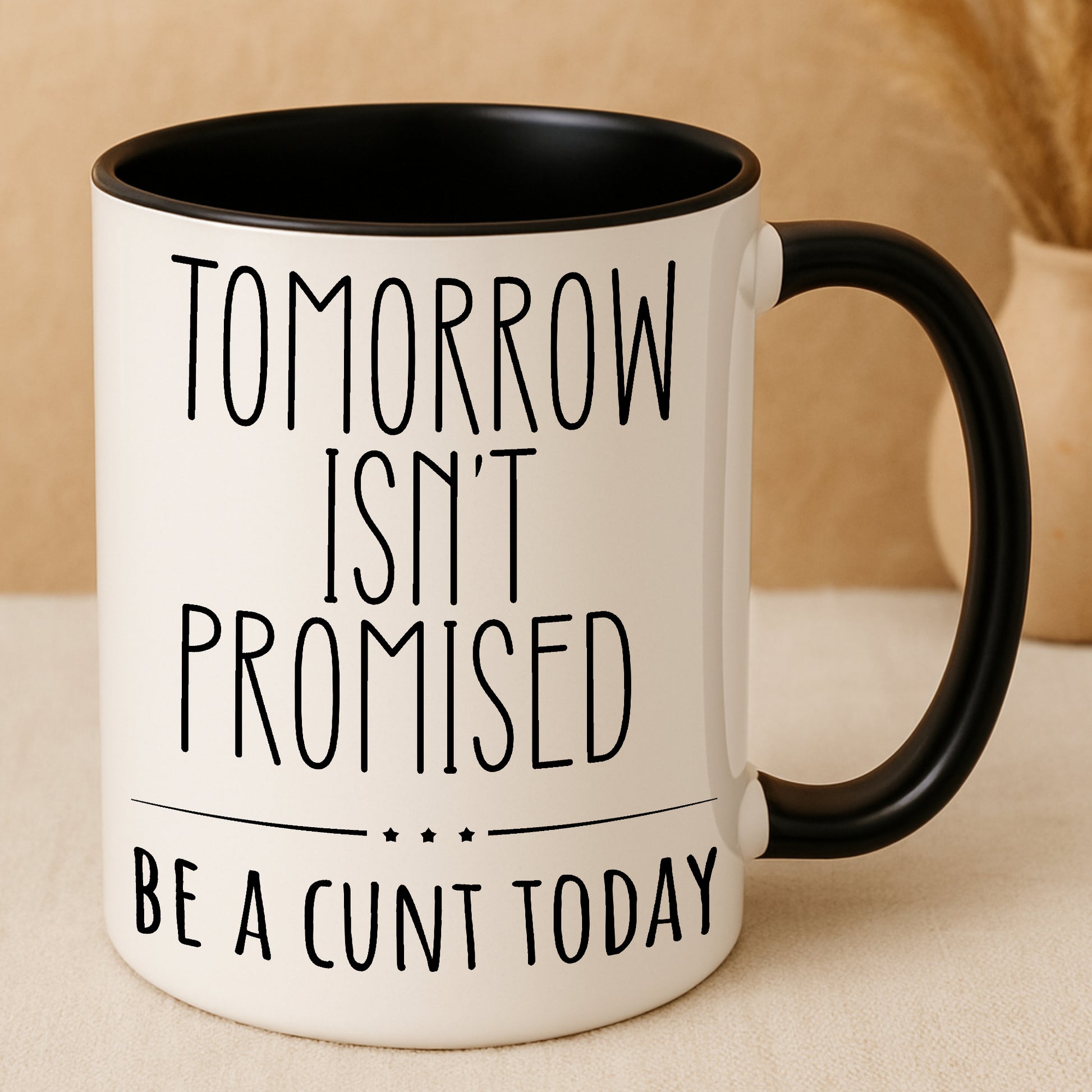 Tomorrow Isn’t Promised – Be A C*nt Today Funny Mug | Rude Coffee Cup Gift for Friends, Colleagues & Sassy Adults